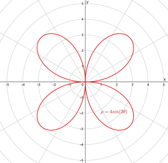 四叶草的极坐标方程型如 ,例如 的图形如下