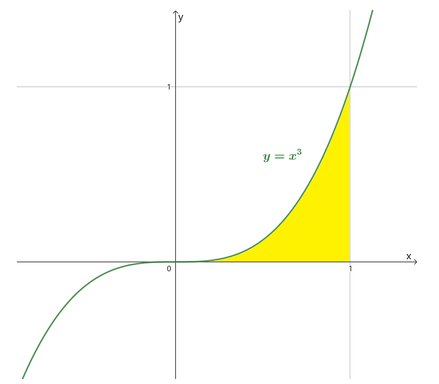 自行搜索微积分基本公式(牛顿-莱布尼茨公式)并计算定积分 ∫01x3dx\int_0 ^1 {x^3} dx∫01x3dx 的值,即 y=x3y=x^3y=x3 的图形与 xxx 轴在 [0,1][0,1][0,1] 区间上所围成的面积。