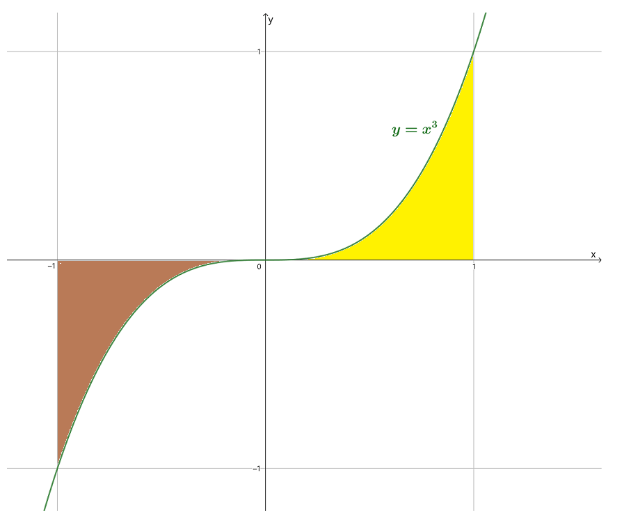 参考上一题,计算定积分 ∫−11x3dx\int_{-1} ^{1} {x^3} dx∫−11x3dx 的值。