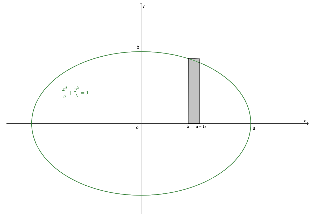 为了求椭圆 ax2+by2=1 所围棋成的面积 S ,可以先求出第一象限中的两坐标轴与椭圆所围成的面积 S1 然后乘以 4 。