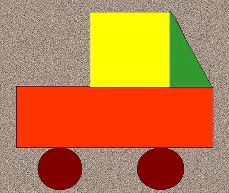 上一题认识了几个图形,见下图,用几个简单的图形组成了一辆小汽车的侧面。