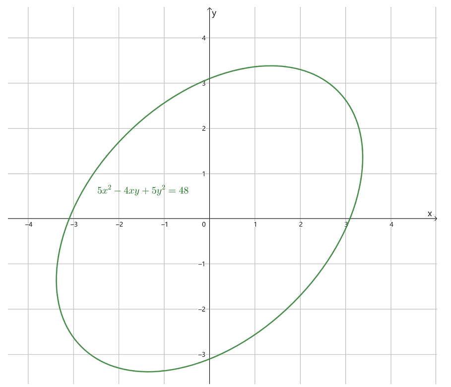 构成的图形,即满足方程 5x2−4xy+5y2=48 的图形从标准位置旋转了一个角度,如下图