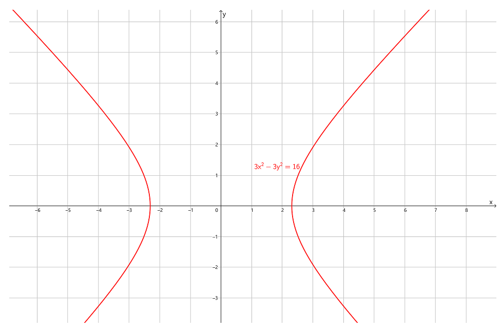 构成的图形,即满足方程 3x2−3y2=16 的图形在标准位置,其主轴为 x 轴,如下图
