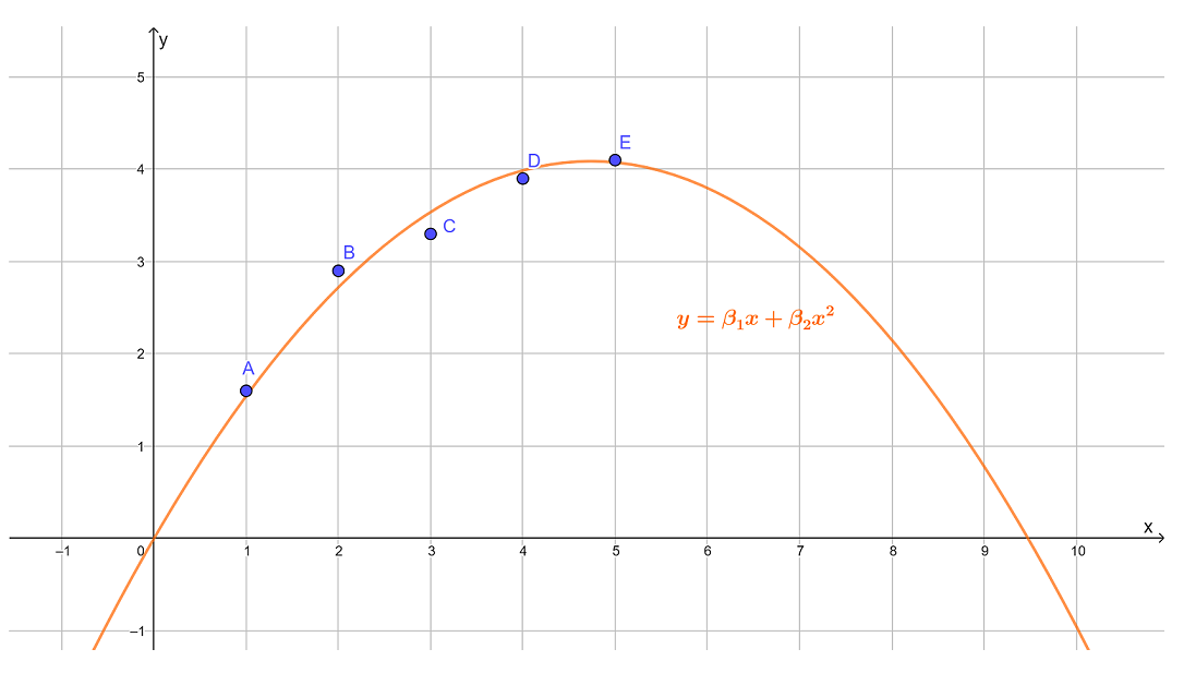 y=β1x+β2x2 .