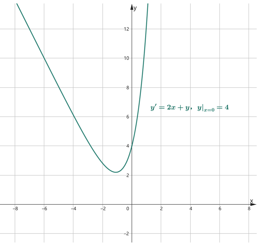 如图,求一曲线的方程,这曲线过点 (0,4)(0,4)(0,4) ,并且它在 (x,y)(x,y)(x,y) 处切线的斜率等于 2x+y2x+y2x+y .